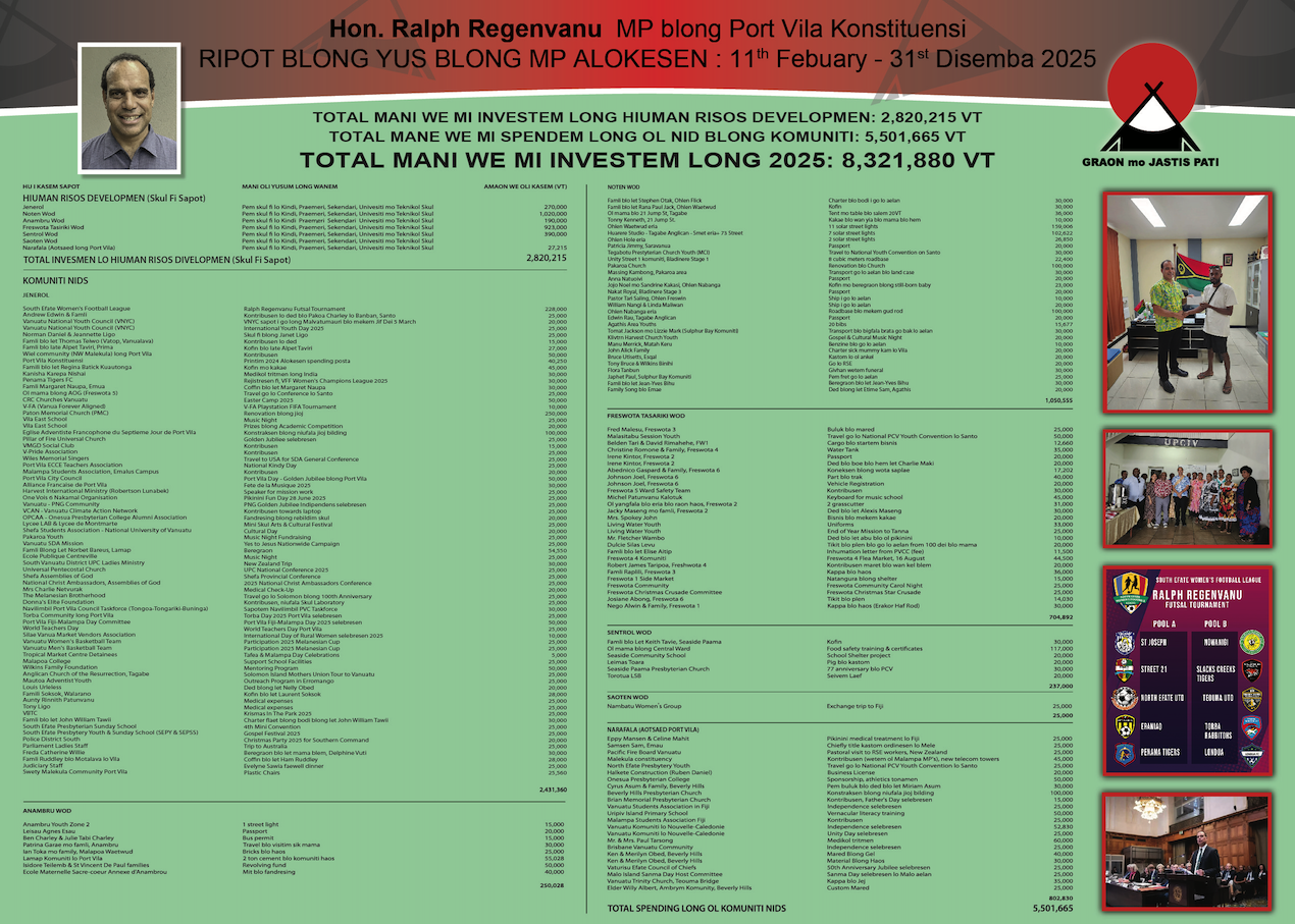 2025 MP Alokesen Ripot - MP Ralph Regenvanu, Port Vila Konstituensi